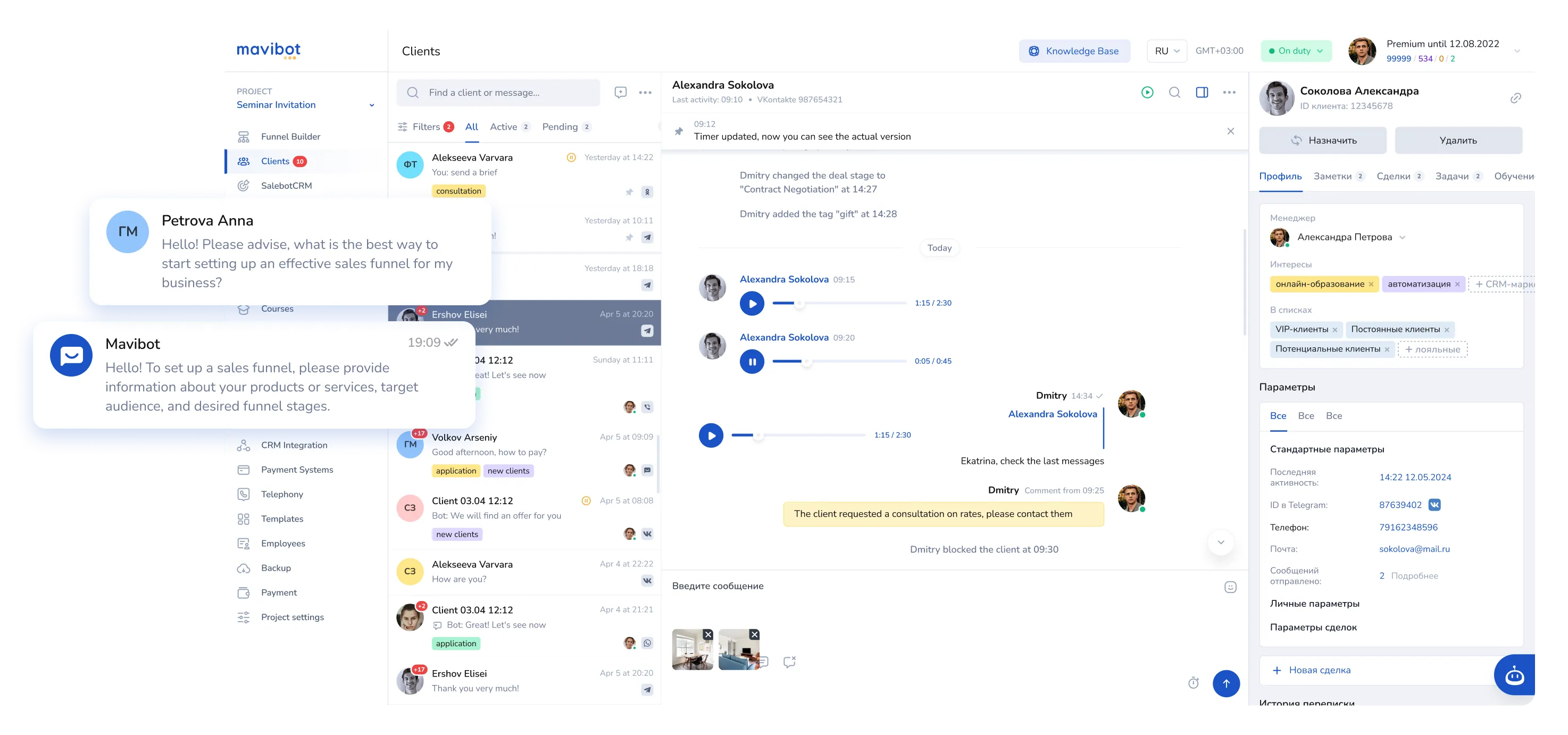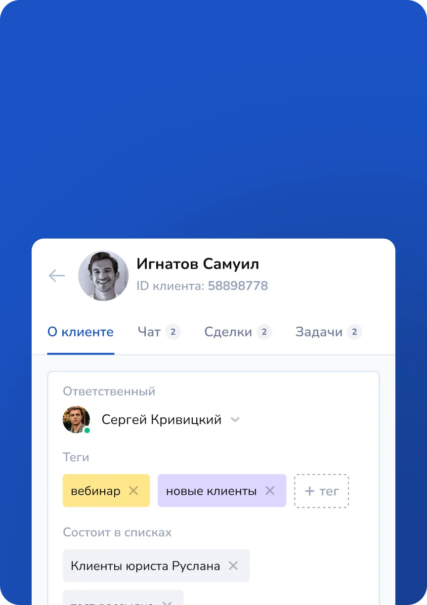 Toda la comunicación se recopila en un solo lugar, las tareas rutinarias son automatizadas, el equipo trabaja más rápido y de manera más eficiente.