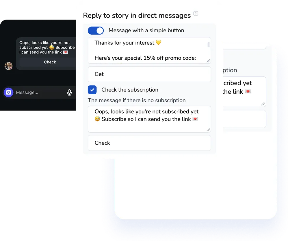 To check a client’s subscription (from comments, DMs, or story reactions), simply enable the “Check subscription” option in automation settings.
