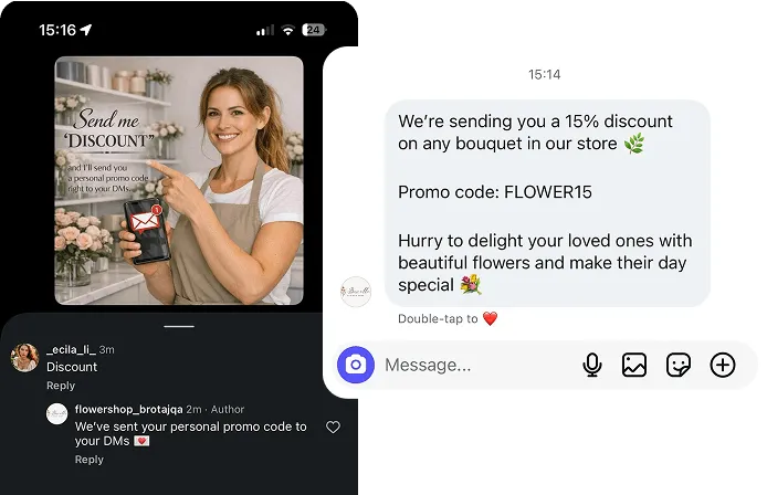 Engage ready-to-buy customers instantly with automatic replies to messages and comments.