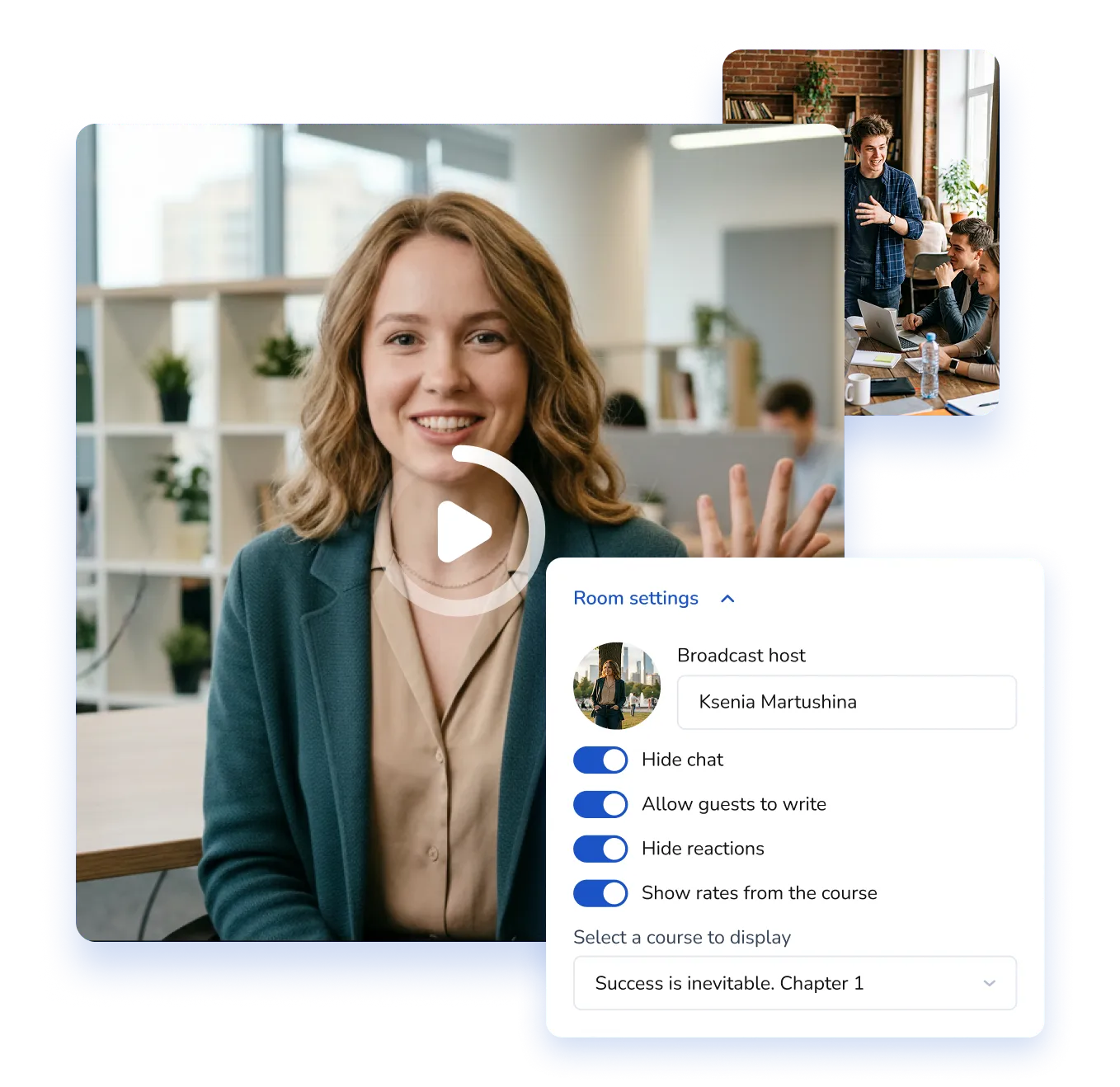 Launch auto-webinars with customizable scenarios and built-in chat for real-time interaction with your students.