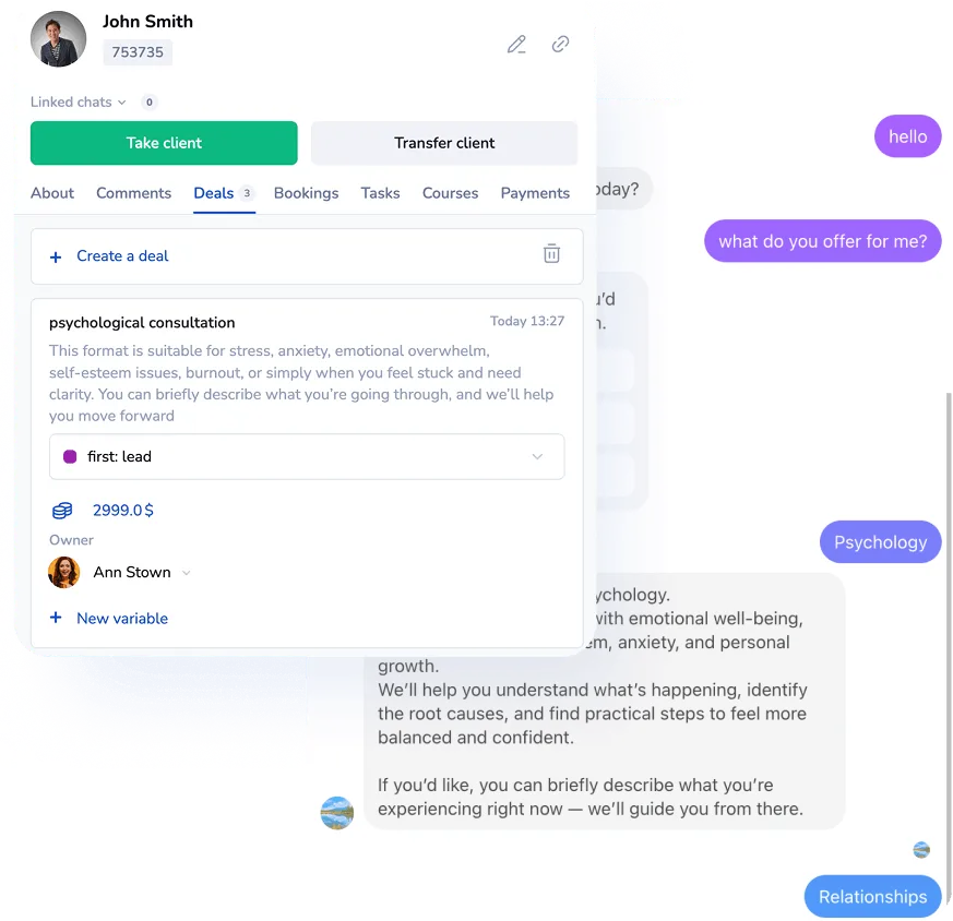 Автоматически создавайте сделки в CRM из каждого диалога с клиентом