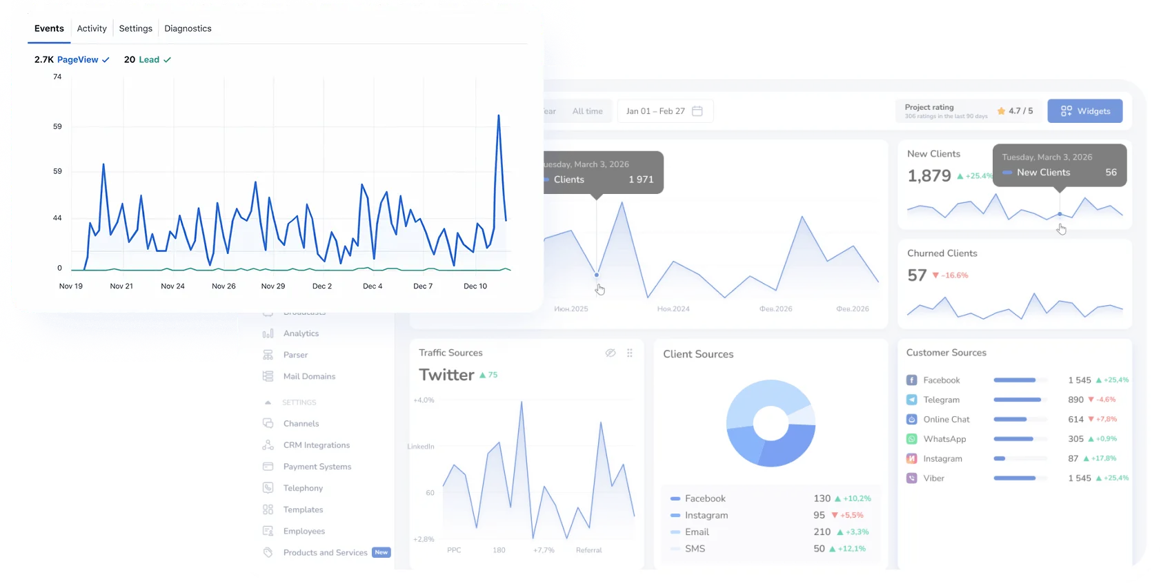 - Распределить клиентов по каналам связи и этапам воронки с полной прозрачностью и учетом поведения.