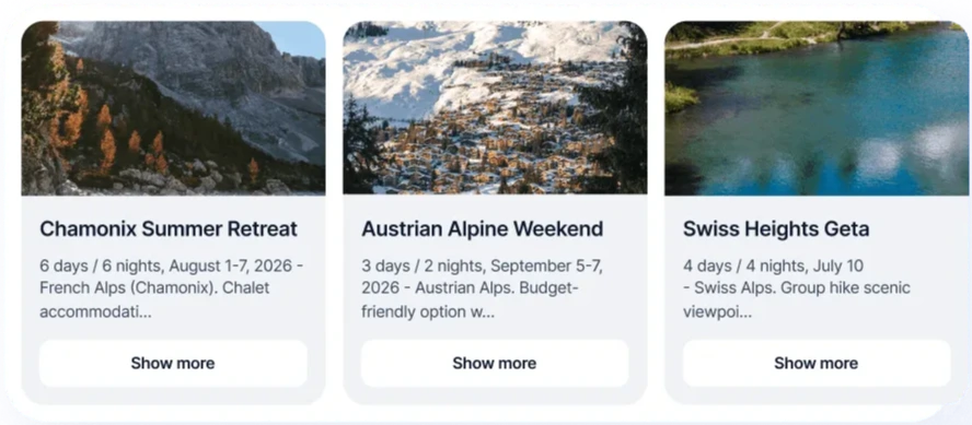 Показывайте до 10 товаров или услуг с фото, описанием и кнопками прямо в переписке