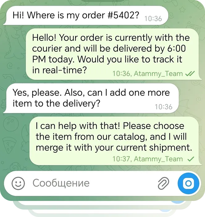 - Semi-automated system: The bot handles communication, data collection, and structuring, while employees only perform the final verification.