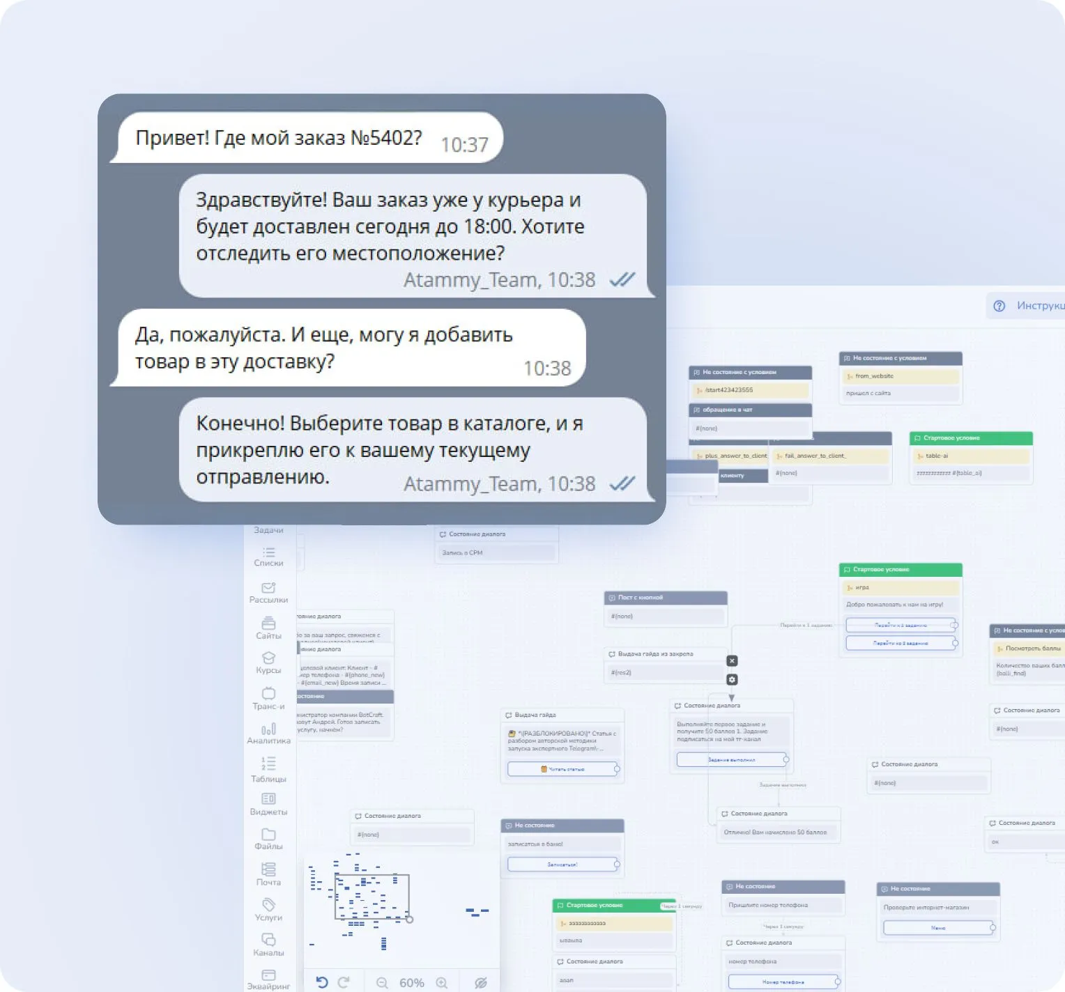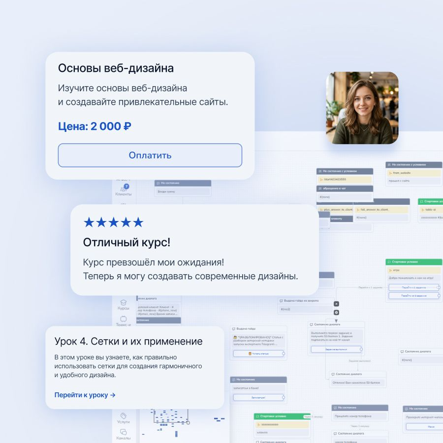 Everything for sales in one system: no-code chatbot creation, website and online course creation, CRM, payment acceptance, mailings