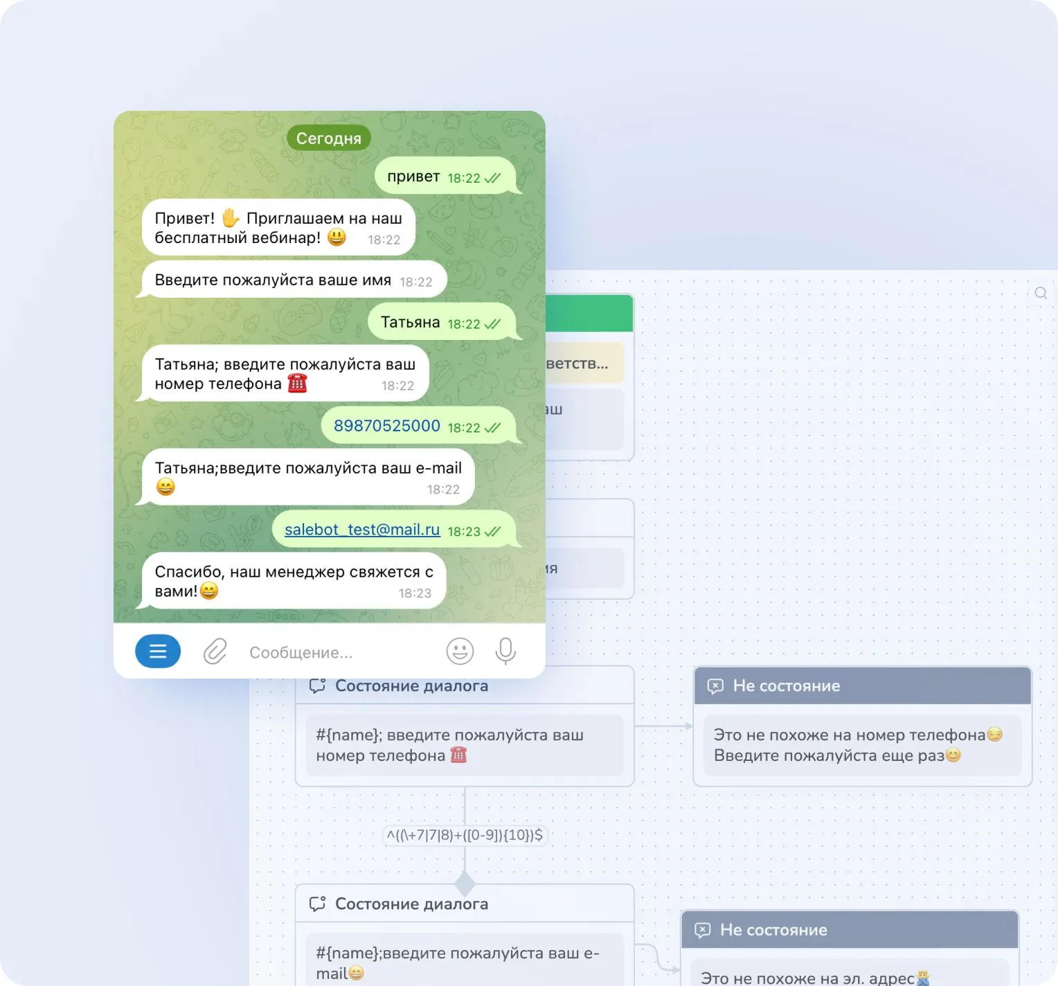 - Series of delayed messages (warming up)After delivering the material, a sequence of messages is launched: program details, student stories, testimonials, career opportunities, and an invitation to a Telegram channel for closer communication.
