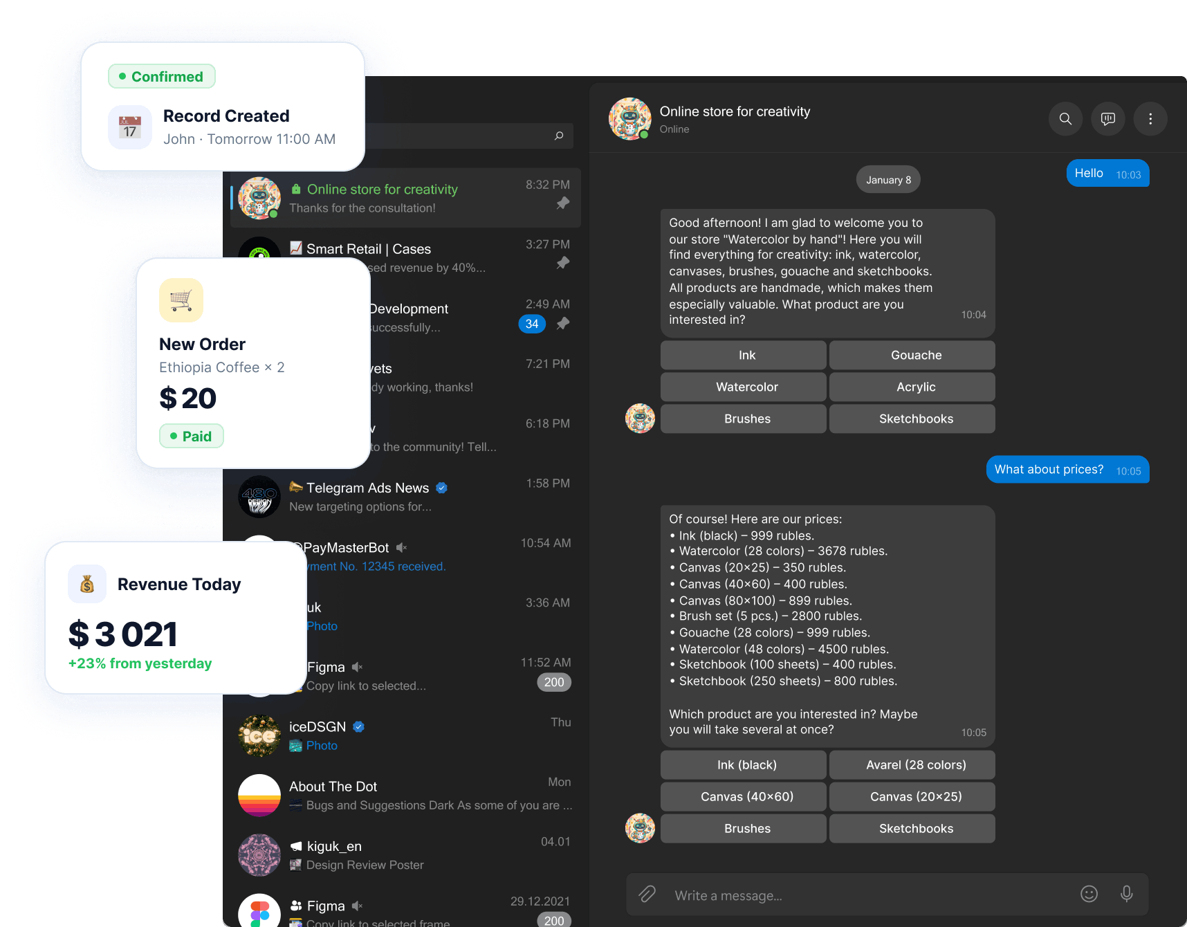 Expand your business and audience reach across any channel: Telegram, Discord, TikTok, Facebook, and others