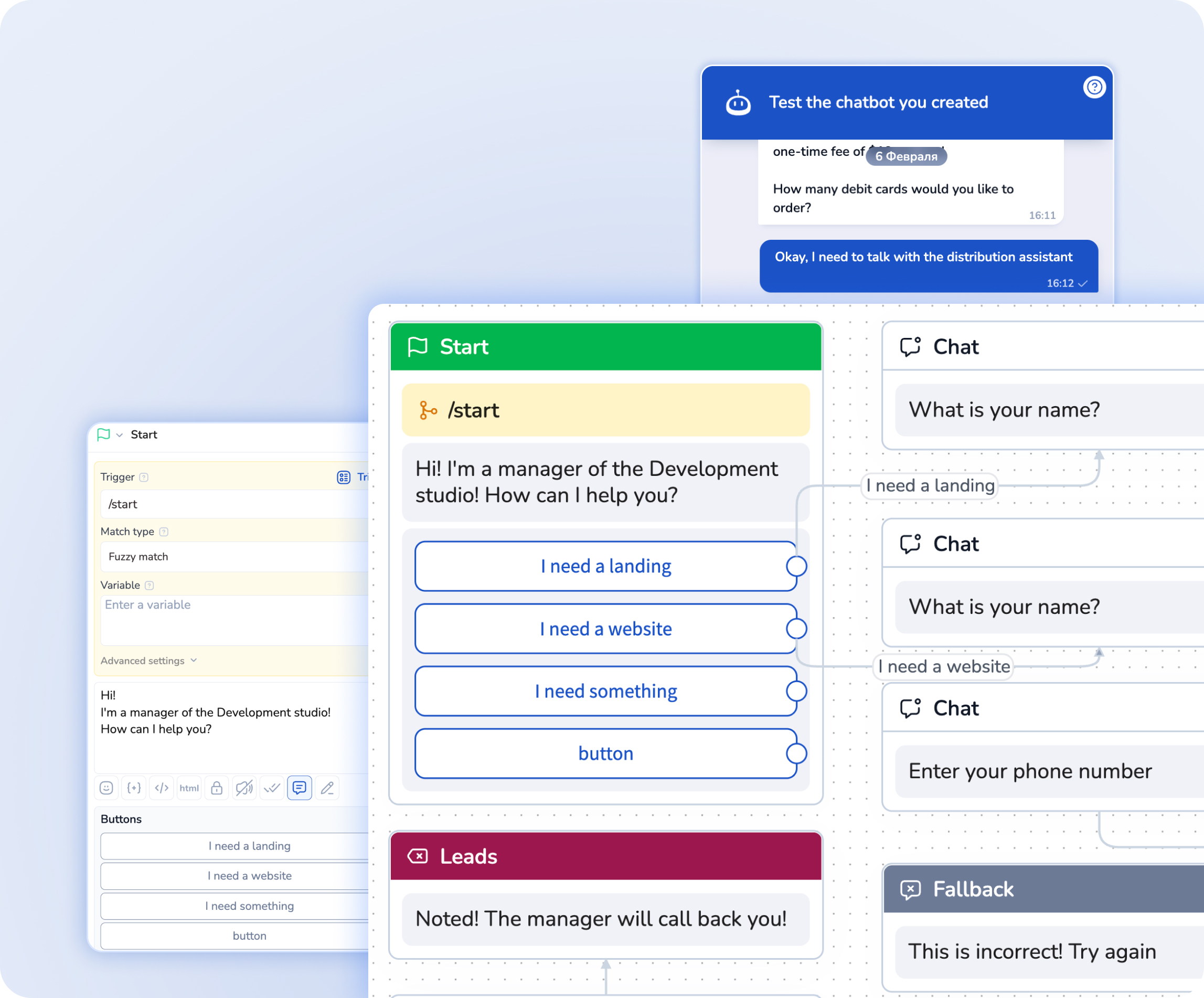What the chatbot builder looks like inside